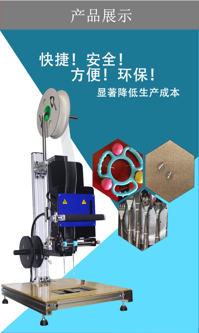 l 彈性膠釘機特別為包裝玩具、小五金工具和廚房用具等產品而設計;也可適用于襪類、家居用品、食品、首飾、寵物用品、園藝、線纜及其它特殊包裝用途。